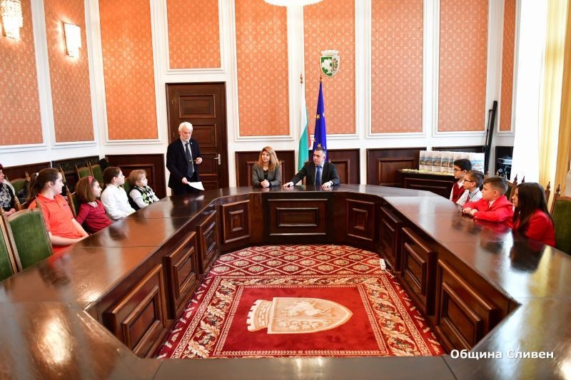 Кметът Стефан Радев посрещна днес в Общината ученици от сливенски училища, класирали се за участие в Тайландската международна олимпиадата по математика - TIMO 2019. Финалът ще се проведе през месец април тази година на остров Пукет, Тайланд.