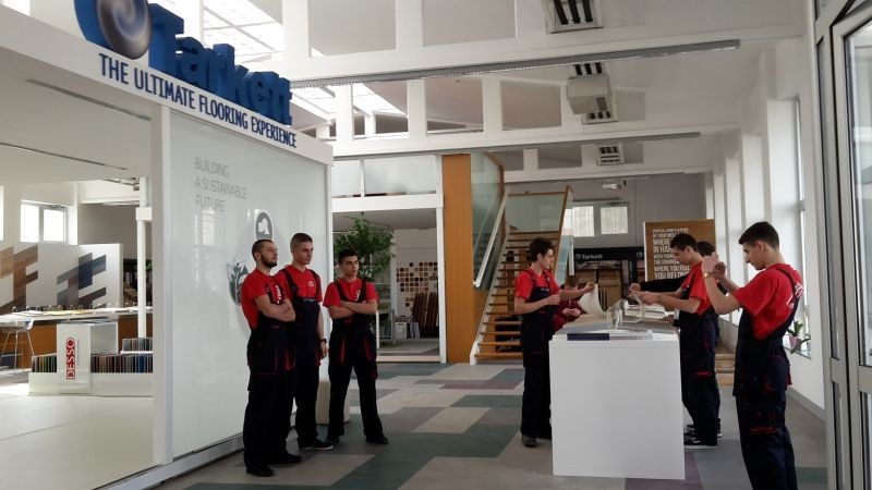 По покана на Таркетт България, ученици от Сливенската гимназия по строителство и архитектура „Арх. Георги Козаров“, посетиха завода на Tarkett за производство на подови настилки в град Бачка Паланка (Сърбия). Това съобщиха пред журналисти от гимназията. Участието на шестимата ученици в тридневната „Tarkett Academy” им даде теоретични знания за видовете подови настилки за бита, обществени сгради, промишлеността и индустрията, но най-ценни бяха придобитите практически умения и техники за полагането им. Френската компанията „Tarkett” е един от световните лидери за производство на подови настилки. Благодарение на Таркетт България и Терснаб АД гр. Сливен учениците имаха възможност да участват безплатно в Академията и да се запознаят с производството на подови настилки в реални условия. С връчването на сертификатите, учениците получиха и предложения за работа от водещи компании в бранша.