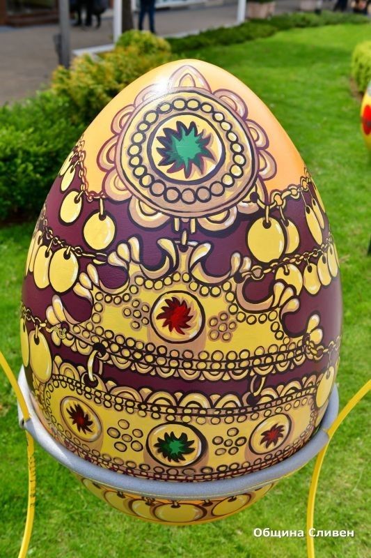 И тази година големите великденски яйца, поставени пред сградата на Община Сливен, са нарисувани от ученици на Националната художествена гимназия „Димитър Добрович“. За пореден път младите художници показаха своя усет към красотата и изяществото. Темата тази година е „Накити“ и за първи път няма да бъде избирано най-красиво яйце, а всички деца, участвали в изработката на украсата, ще получат награди. Община Сливен благодари за сериозното и отговорно отношение, което проявяват възпитаниците на гимназията, включвайки се в инициативата за големия християнски празник.