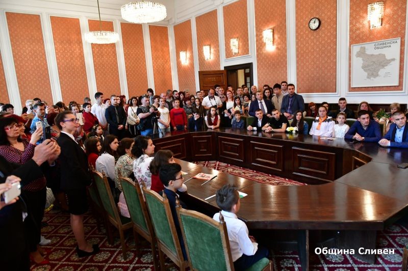 Кметът Стефан Радев се срещна с ученици от Сливен с високи постижения от национални и международни състезания и конкурси. На 48 деца от различни училища и на различна възраст той връчи грамоти и книги. Те са номинирани от училищата, в които учат и от Центъра за подкрепа на личностно развитие Детски комплекс-Сливен. Всички деца са постигнали успехи в областта на науката, изкуството, спорта, професионалните области, в които се обучават. Радев поздрави децата за успехите, които са постигнали и им честити празника.