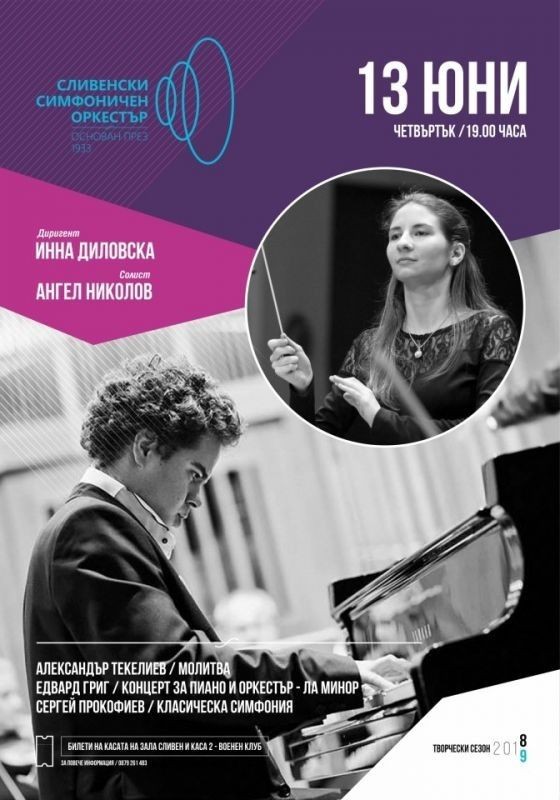 Концертът ще се състои в зала „Сливен“ от 19 часа. Гост-диригент ще бъде Инна Диловска, а солист Ангел Николов – пиано.