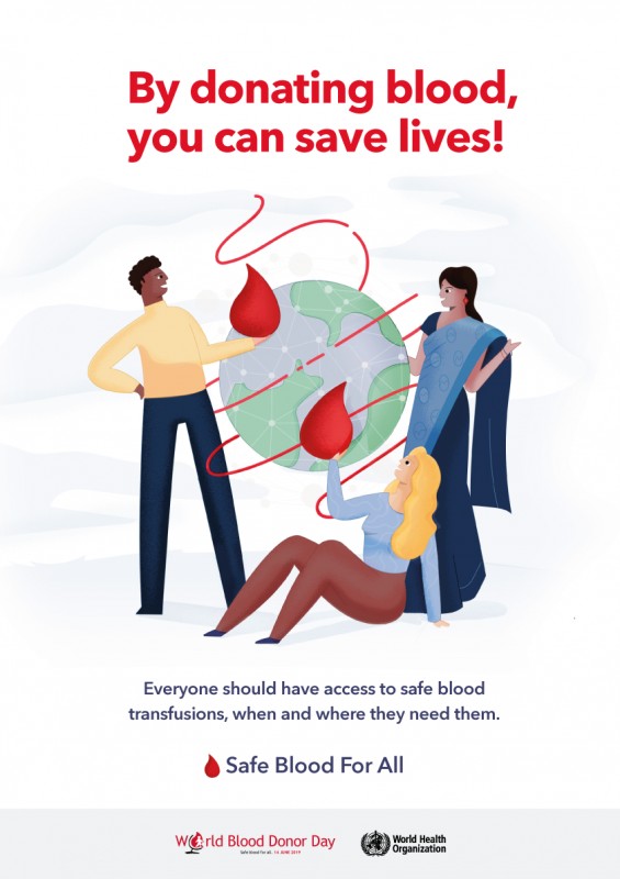 Преливането на кръв спасява милиони животи всяка година. Необходимостта от кръв и кръвни продукти е универсална, но в световен мащаб достъпът до достатъчно количество и достатъчно качествени продукти е нееднозначен. През май 2005 г. Световната здравна асамблея определя Световния ден на доброволния донор на кръв катo ежегодно събитие, което да се провежда на 14 юни. Фокусът на кампанията тази година е под мотото „Безопасна кръв за всички”. Домакин е Руанда - Централна Африка.