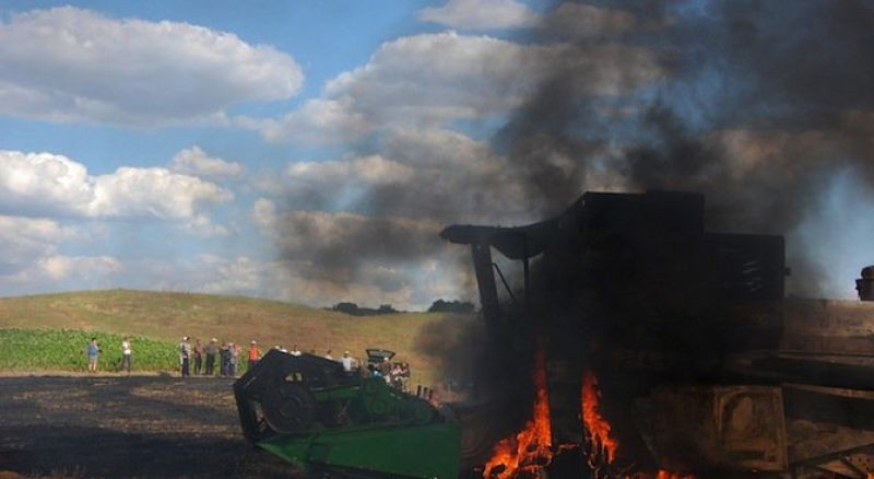 ПОЖАРНИКАРИ ГАСИХА КОМБАЙН, ЗАПАЛИЛ СЕ ПО ВРЕМЕ НА ЖЪТВА