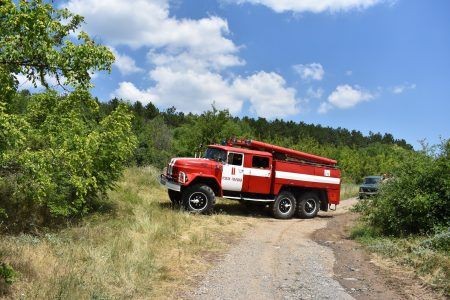 ПРОДЪЛЖАВАТ ГАСЕНЕТЕ НА ПОЖАРА В МЕСТНОСТТА „СУХИ ДЯЛ“ КРАЙ КОТЕЛ