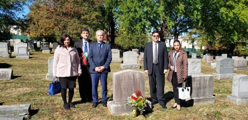 ДИПЛОМАТИТЕ НИ В САЩ ПОДНЕСОХА ЦВЕТЯ НА ГРОБА НА СТЕФАН ПАНАРЕТОВ ОТ ИМЕТО НА ПРИЗНАТЕЛНИТЕ СЛИВЕНЦИ