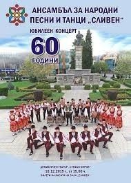 На 18 декември от 19:00 часа в залата на Драматичен театър „Стефан Киров“ ще се проведе юбилеен концерт по повод 60 години от създаването на Ансамбъл за народни песни и танци-Сливен. Билетите за спектакъла вече свършиха. Заради големия интерес формацията организира и втора дата, която ще бъде на 27 декември в зала „Сливен“ от 18:00 часа.