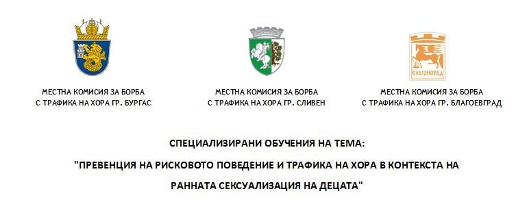 В изпълнение на Програмите за предотвратяване и противодействие на трафика на хора и закрила на жертвите за 2020 г., Местните комисии за борба с трафика на хора в Сливен, Бургас и Благоевград ще проведат в партньорство три последователни специализирани обучения на тема: „Превенция на рисковото поведение и трафика на хора в контекста на ранната сексуализация на децата”, с лектор д-р Весела Банова – клиничен психолог, психоаналитик и доктор по социология, дългогодишен експерт в областта на социалните политики и закрилата на деца в риск.