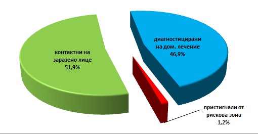 Под домашна карантина са 848 души, като само 10 от тях са поставени от изолация след пристигане от рискова зона. Като контактни на диагностицирани лица са 440 души или 51,9 процента от общия брой на карантинираните, сочи статистиката на ОД на МВР.