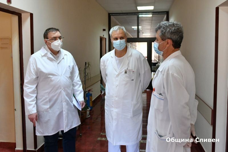 Министър Костадин Ангелов посети отделенията за лечение на пациенти с коронавирус в МБАЛ "Д-р Иван Селимински"-Сливен. Той изрази удовлетворението си от работата на медиците и доброволците в тези звена.