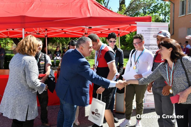Победителите от Националното състезание „Най-добър млад строител“ получиха наградите си от кмета Стефан Радев. В надпреварата се включиха близо 70 ученика от строителни гимназии в страната. Състезаваха се 38 отбора от 16 града в дисциплините облицовки и настилки, зидария, сухо строителство, бояджийски дейности и геодезия.