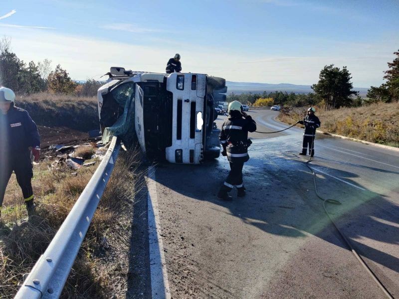 КАМИОН С ВЪГЛИЩА СЕ ОБЪРНА НА КОНЬОВСКИЯ ЗАВОЙ НА ПЪТЯ ЗА НОВА ЗАГОРА