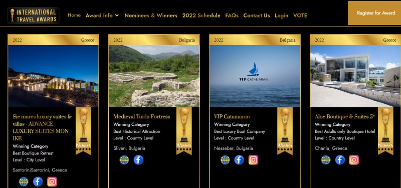 Сливенската Късноантична и средновековна крепост „Туида“ бе номинирана и спечели отличие в Международните награди за пътуване – INTERNATIONAL TRAVEL AWARD 2022. Обектът се състезава в категория „Най-добра историческа атракция“. Конкурсът се проведе в няколко тура, като в последния етап бе Жури-финалът. Екипът на крепостта си пожелава напред и нагоре, за все по-добри постижения.