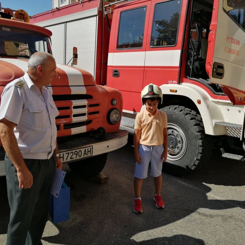 Константин Георгиев получи грамота за проявена съобразителност, инициативност и смелост, както и книги, и материали, свързани с професията на пожарникаря. Дежурната смяна даде възможност на детето да опознае отблизо техниката и оборудването, с които пожарникарите гасят пожари и помагат на хората всеки ден.