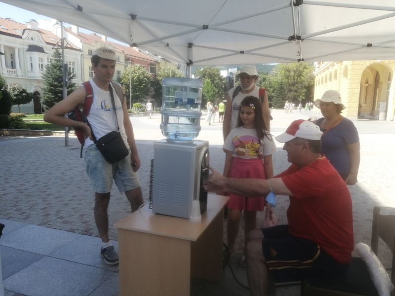 Пункт за вода бе разкрит заради жегите в центъра на Сливен, по инициатива на кмета Стефан Радев. Пунктът се намира до Стария бряст. Той ще работи между 11 и 16 часа, на 18 и 19 август. През тези два дни, когато се очаква термометрите да отчетат по-високи стойности, минувачите могат да получат по чаша безплатна вода.