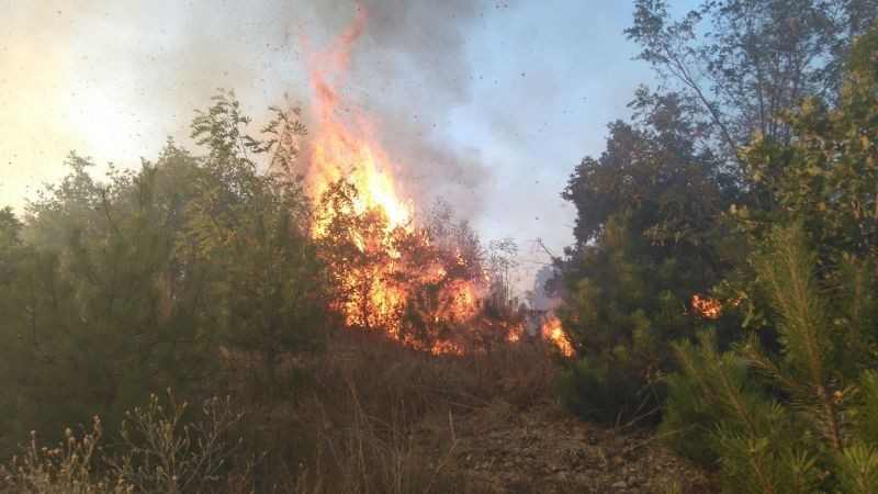 ПРОДЪЛЖАВА ГАСЕНЕТО НА ПОЖАРА В РАЙОНА НА ВОЕНЕН ПОЛИГОН