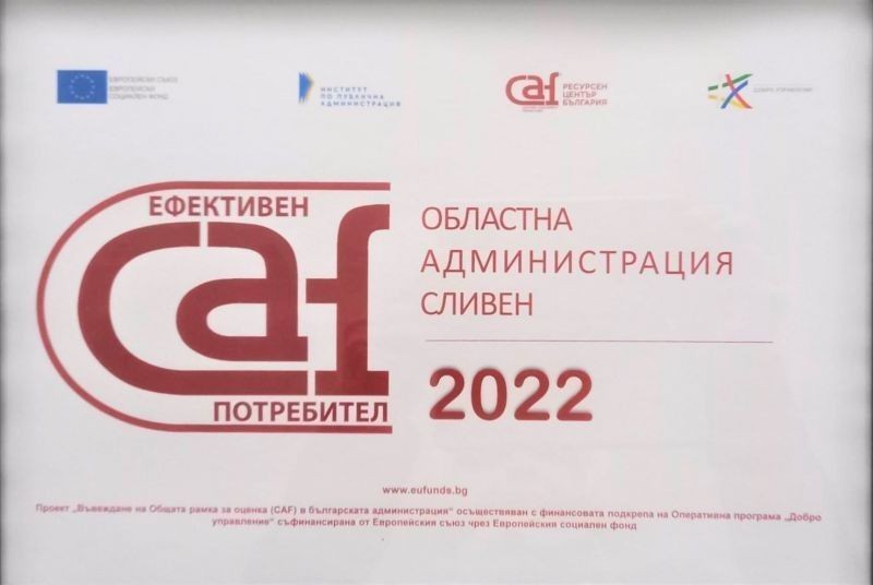 ОБЛАСТНАТА АДМИНИСТРАЦИЯ СЛИВЕН ПОЛУЧИ СЕРТИФИКАТ CAF