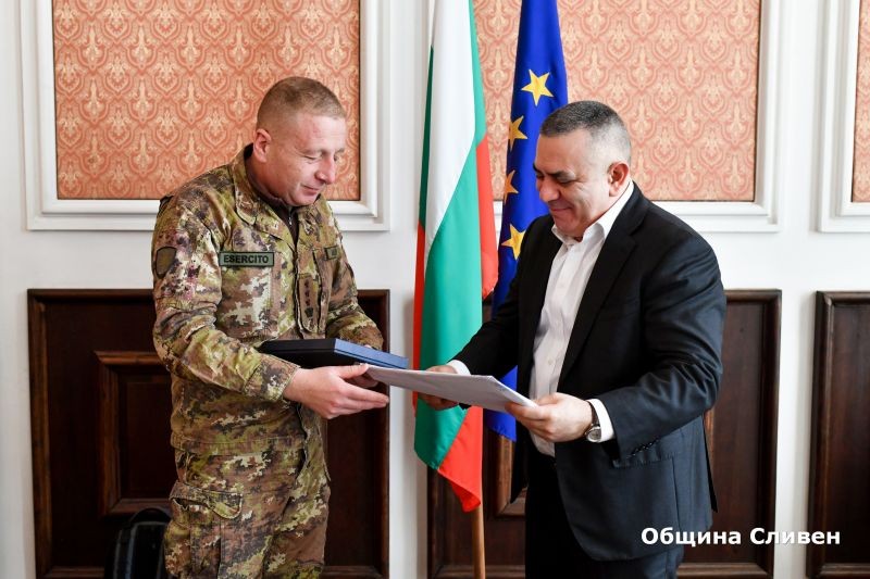 Кметът Стефан Радев посрещна днес в Общината италианското ръководство на многонационалната бойна група, която в момента провежда обучения на Военния полигон „Ново село“.