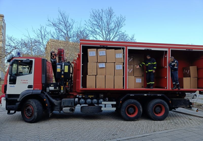 Камион с материални помощи за пострадалите от опустошителното земетресение в Турция и Сирия днес беше натоварен и замина за Националната логистична база на БЧК в село Лозен.