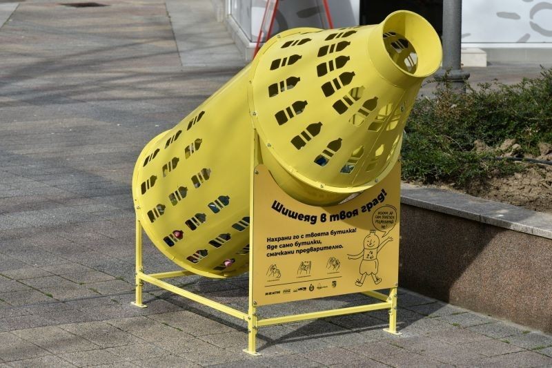 ШИШЕЯД СЪБИРА ОТПАДЪЦИ ОТ ПЛАСТМАСОВИ БУТИЛКИ ДО ЗАВЕДЕНИЯ НА ПЕШЕХОДНАТА ЗОНА В СЛИВЕН