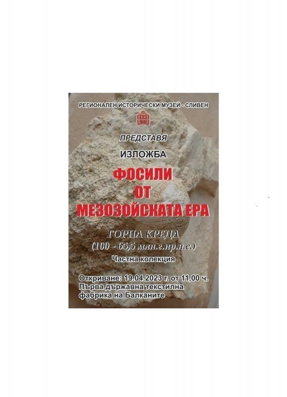 На 19 април 2023 г. от 11:00 ч. в РИМ Сливен предстои откриване на изложбата "Фосили от Мезозойската ера" с автор и собственик на колекцията Петър Петров, реставратор към музея. Вкаменелостите, сред които от морски таралежи, бивалвии, брахиоподи, гастроподи, белемнити, колониални корали и от други неопределени видове, са открити случайно по време на археологически проучвания в област Плевен през месец май 2022 г. Повечето от тези морски организми произхождат от периода на т.нар. Камбрийския взрив отпреди 542 млн. г., който бележи началото на глобална промяна на живота на планетата. За пореден път фосилите служат за доказателство, че по това време България, както и по-голямата част от европейския континент, са се намирали на дъното на океана Тетис.