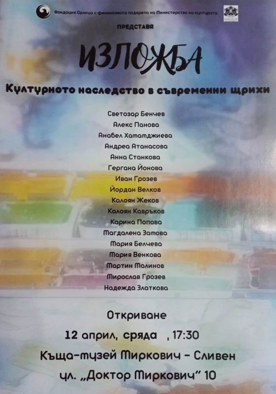 Художествена галерия „Димитър Добрович“ – Сливен представя изложба с творби на студенти от Националната художествена академия София и Филиал Бургас по проект „Културно наследство в съвременни щрихи“.