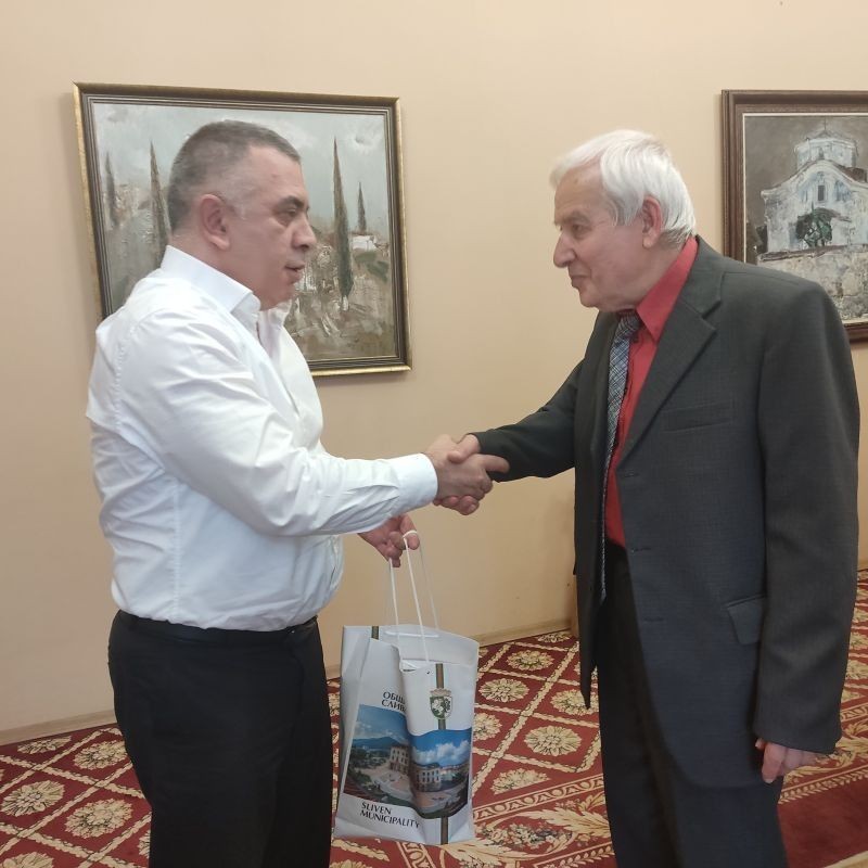 Теодосиев информира кмета, че през школата му са преминали много талантливи ученици, които вече са професори в чужбина, имат отлична реализация и са сред най-добрите специалисти в своята сфера. Сред тях има и сливенски възпитаници. Един от тях в момента е Златомир Желев от ППМГ "Добри Чинтулов".