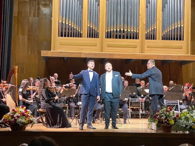 Концертът започна както подобава – с почит към Мишо Тодоров, съосновател и вдъхновител на оркестъра, оставил на този град цялата си любов, енергия и талант, цигулката и сърцето си. Неговата „Българска рапсодия“ беше изпълнена великолепно и вдъхновено от сливенските симфоници. Както се каза на предшестващата пресконференция, Българската рапсодия на Мишо Тодоов е сравнима с написаната през същата 1923 г. „Рапсодия Вардар“, с тази разлика, че нотният текст на Мишо Тодоров е за пиано, а оркестрацията е по-късно дело на Димитър Ненов. Дирижира я маестро Владимир Кираджиев, чието над 3-годишно творческо присъствие в Сливен е част от историята на симфоничния оркестър, работническата опера и учебния театър на Консерваторията в най-добите им години, под ръководството на също така заслужилия за музикалната култура на Сливен Сидер Сидеров. Маестро Кираджиев сподели, че е щастлив да пристигне от Виена в този важен за него град Сливен, при този важен за него оркестър, много от музикантите на който помни и познава. Щастлив е и от втория момент на почит на сливенските симфоници към друга една заслужила за музикалната култура на Сливен личност, като непрежалимия тенор Камен Чанев. Сливенският тенор, станал световна величина в оперното пеене! Трима млади негови следовници пяха в тази вечер оперни арии, които той е пял. Иля Сквирский, Кудайберген Абилдин и Анле Гоу са лауреатите на първия конкурс за млади тенори „Гласът на Камен“. Тримата прекрасни певци, бъдещи звезди на оперната сцена, останаха впечатлени от топлия прием на публиката, както впрочем и тя – от техните дарования. Аплодирани бяха сърдечно представените арии, дуети и терцети, от ария на Ленски от „Евгений Онегин“ на Чайковски и каватина на Фауст N 8 от операта „Фауст“ на Шарл Гуно до романса на Неморино Una furtiva lagrima. Подобно на тримата големи тенори Павароти, Карерас и Доминго, тримата млади тенори направиха бравурно съвместно изпълнение на канцонетата „О, соле мио“ и на бис – арията Nesun dorma от операта “Турандот“ на Джакомо Пучини. Концертът ще бъде повторен на 27 май в зала „България“, като част от програмата на 54-я международен фестивал „Софийски музикални седмици“.
