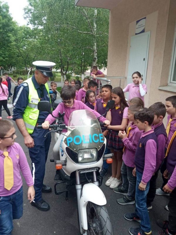 Децата имаха възможност да се запознаят с част от екипировката и оборудването на пътните полицаи- служебните автомобили и мотоциклети, звуковата и светлинна сигнализация, елементите на униформата, стоп палките и тестовете за употреба на алкохол.