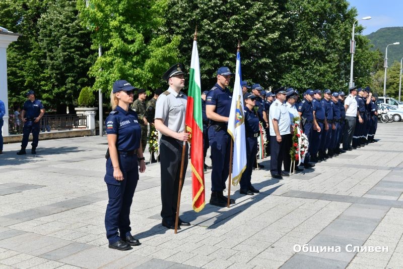 Празничното честване днес започна на площад „Хаджи Димитър“, където бе отслужен тържествен молебен за здраве, закрила и успех на полицейските части, знамената на Република България, както и представителното знаме на Областна дирекция на МВР-Сливен. Венци и цветя на признателност пред паметника на Хаджи Димитър и сливенските възрожденци поднесоха кметът Стефан Радев, директорът на ОДМВР-Сливен ст. комисар Димитър Величков, председателят на Общински съвет-Сливен Димитър Митев, командирът на Център за подготовка на специалисти – Сливен полк. Любомир Вачев, директори и представители на институции в града, граждани и др.