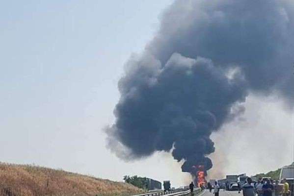 Камион гори на 270-ия км на автомагистрала „Тракия“. Образувало се е огромно задръстване.
