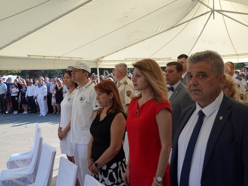 Сред присъстващите бе и зам.кметът Пепа Чиликова. От името на градоначалника Стефан Радев тя връчи на един от студентите от випуска парична награда и поздравителен адрес - Десислава Вълчева, която е родом от Сливен, първенец на специалност „Киберсигурност“. По време на задочното си обучение във военноморското училище тя се отличава с особени постижения и успех.