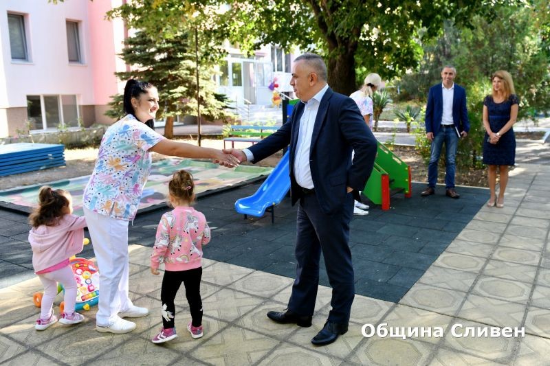 Детска ясла № 14 в Сливен ще радва малчуганите с изцяло нова визия. Сградата на детското заведение беше напълно обновена и вече има готовност да посреща най-малките жители на общината, които тази година ще прекрачат прага й за първи път. Удовлетвореност от извършените дейности и задоволство от крайния резултат изрази кметът Стефан Радев. Днес той и част от екипа му посетиха детската ясла, за да видят подобрените условия.