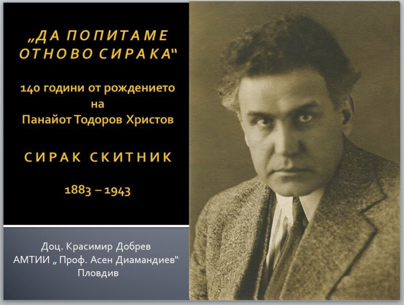 “ДА ПОПИТАМЕ ОТНОВО СИРАКА” – публична лекция на доц. Красимир Добрев по повод 140 години от рождението на Сирак Скитник – 19 октомври 2023 г., Библиотека „ЗОРА”, 17:30 часа