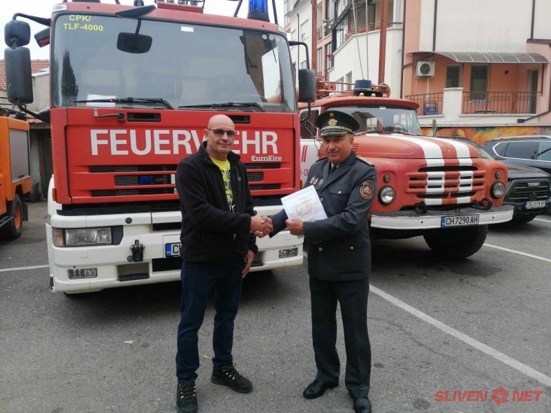 Отличието бе връчено на тържествена церемония в сградата на Районната служба „Пожарна безопасност и защита на населението” в Сливен в присъствието на ръководството на Регионалната дирекция, огнеборци и административни служители.
