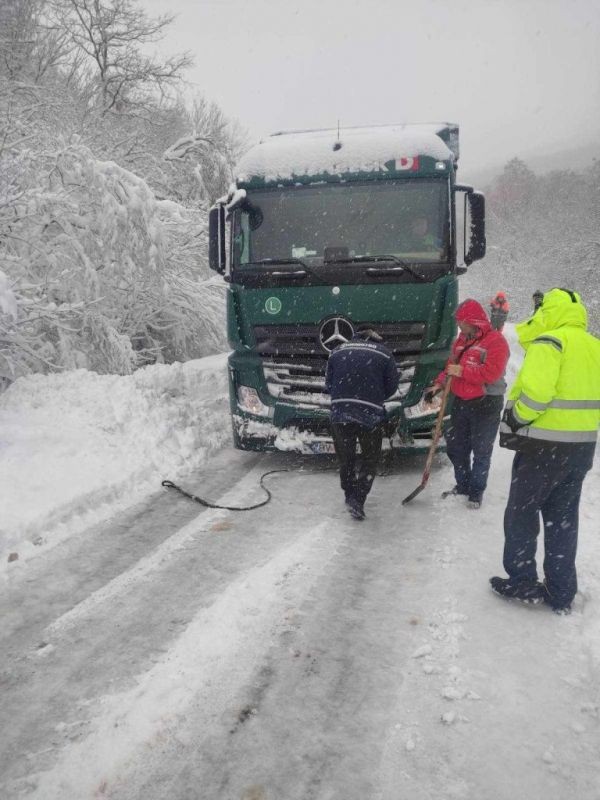 Екипи на полицията, които регулират през целия ден пътя "Петолъчка" - Котел-Омуртаг, вече пропускат освен леки автомобили и товарни до 3,5 тона.