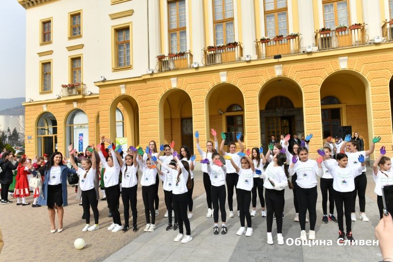Кулминацията на днешния ден бе концертът пред сградата на Общината, в който децата на Сливен предадоха на публиката своя урок по приятелство и толерантност към хората, засегнати от рядко заболяване. Сред тях бяха Жаклин, Тиана и Кристияна от Клуб за поп и рок изпълнители „Ритъм“ при Военен клуб – Сливен, с вокален педагог Елена Пеева, Dance Studio “Barbie” при Военен клуб – Сливен, с ръководители Силвия Терзиева и Искра Стойчева. Със свои изпълнения се включиха още Група за модерни танци „11 стъпки“ при Средно училище „Константин Константинов“, с ръководител Радина Байнашева и Детско-юношески фолклорен ансамбъл „Тракийче“ при Център за подкрепа за личностно развитие – Детски комплекс – Сливен, с ръководители Виолина Попова и Михаил Чанев. Диригент на хора е Маруся Дакева.