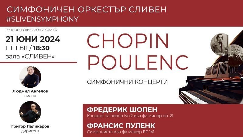 Симфоничен Оркестър Сливен закрива изключително вълнуващия си 91-ви творчески сезон 2023/2024, с елегантен концерт. Събитието ще се състои в Петък 21 Юни, от 18:30ч. в зала “Сливен”.
