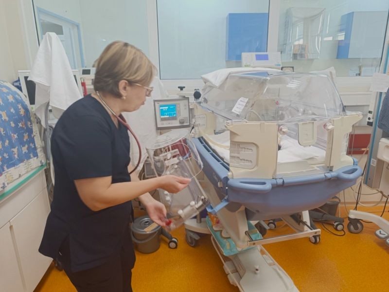 Предоставени бяха инфузионна помпа, перфузор и няколко специализирани кислородни палатки, които подпомагат работата на лекарите в грижата им за най-малките пациенти. Д-р Невена Стефанова постави една от кислородните палатки на малък пациент в тежко състояние и след няколко минути показанията в дишането на детето се подобриха.
