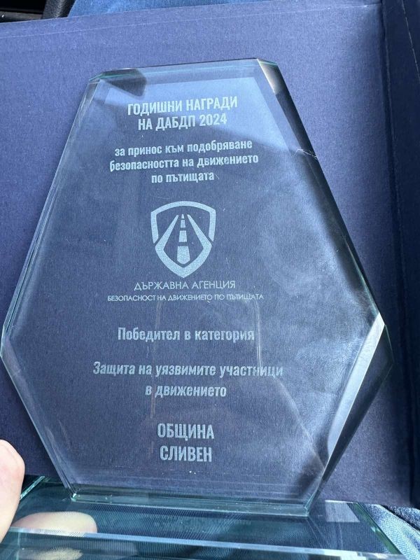 Община Сливен получи награда от Държавната агенция „Безопасност на движението“.