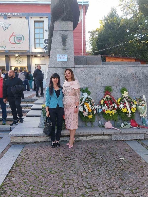 Заместник областният управител Фатме Мустафова участва в ритуала по вдигане на знамената. Тя поднесе цветя пред Паметника на свободата.