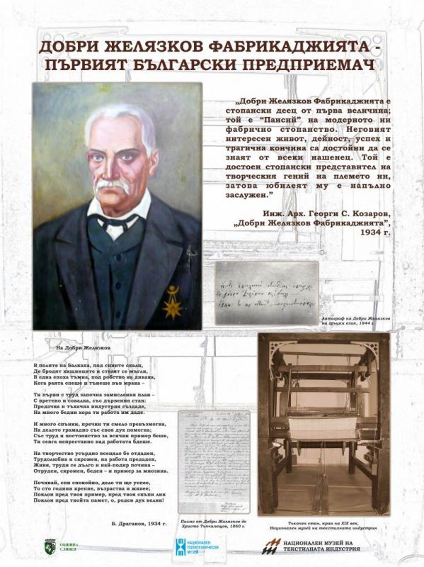 В сряда, 16 октомври, ще бъде открита винилна изложба „Добри Желязков Фабрикаджията – първият български предприемач“. Събитието е посветено на 190-годишнината на текстилната индустрия у нас. То е част от поредицата инициативи, посветени на юбилея и е част от програмата на Общината по повод празника на Сливен – Димитровден.