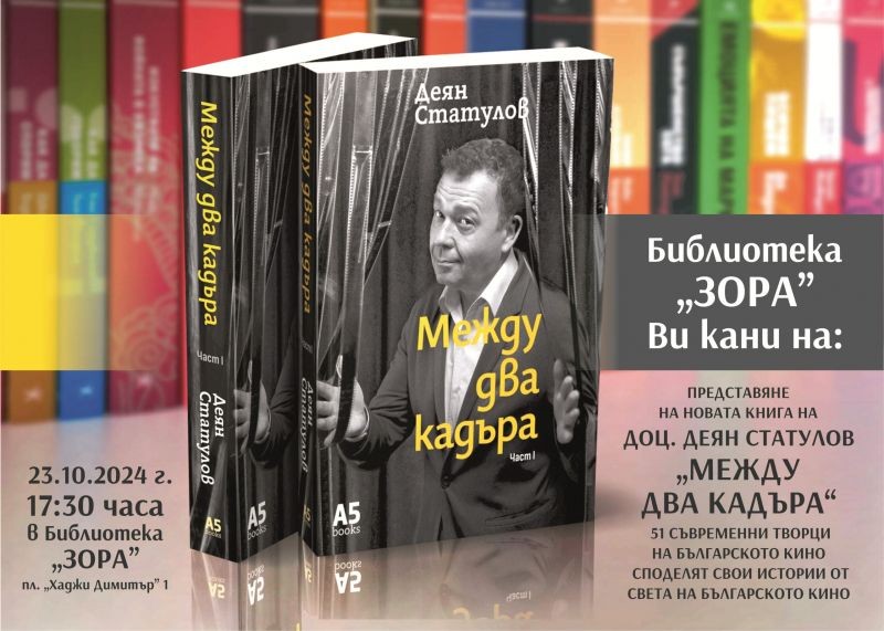 Библиотека „ЗОРА” ще представи новата книга на доц. Деян Статулов „Между два кадъра“: 51 срещи със съвременни творци на българското кино.
