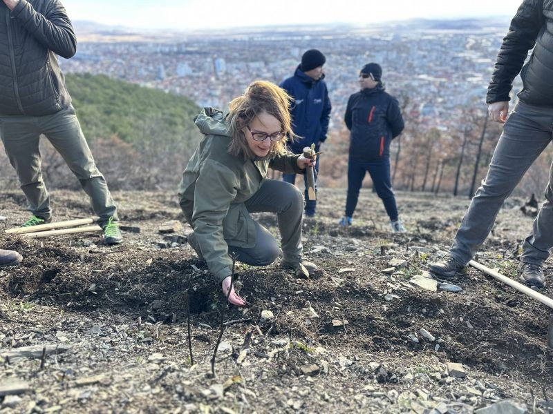 ВЪПРЕКИ СИЛНИЯ ВЯТЪР, МНОГО ХОРА СЕ ВКЛЮЧИХА В АКЦИЯТА ПО ЗАЛЕСЯВАНЕ НА БАРМУК БАИР В СЛИВЕН