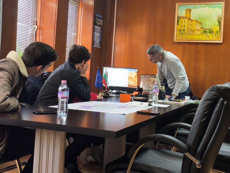 Заместник-кметът Камен Костов прие учениците в кабинета си и ги запозна с едни от най-мащабните проекти на Община Сливен – ремонта на въжената линия до Карандила, проекта за реновация на Колодрума, Индустриалния парк и други. Костов ги попита как виждат развитието на града и от какво се вълнуват младите хора. Заместник-кметът подчерта, че Община Сливен винаги ще бъде отворена за предложения и мнения от младежите. В края на срещата Камен Костов пожела на всички да са здрави, да се забавляват и да обичат хората около себе си.