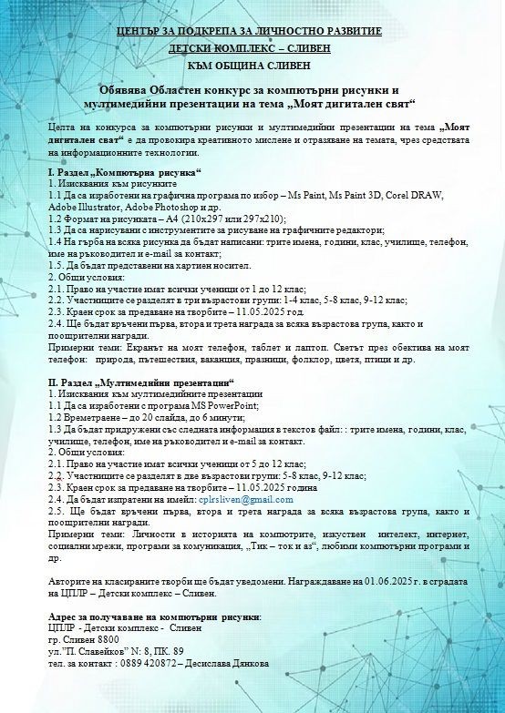 Областен конкурс за компютърни рисунки и мултимедийни презентации на тема „Моят дигитален свят“ – 2025