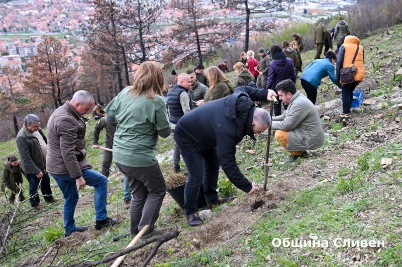 Първата акция по залесяване на местността, засегната от големия пожар през лятото на миналата година, беше организирана от Община Сливен, по инициатива на кмета Радев на 23 ноември. Тогава бяха засадени 2 000 фиданки от вида цер, които са подходящи за района.