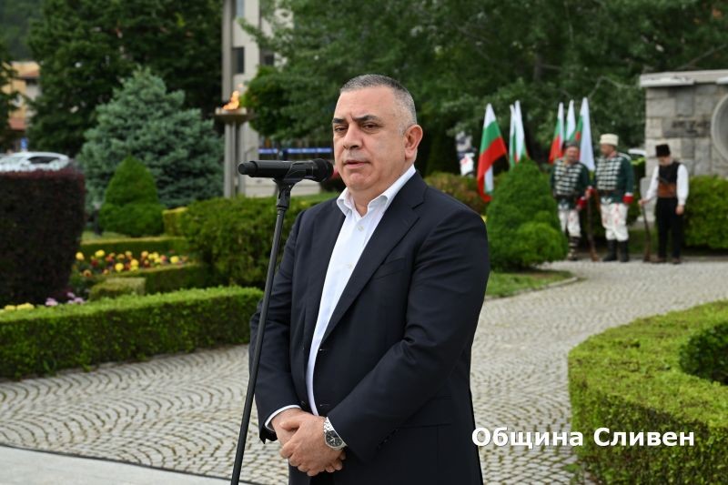 „В навечерието сме на 10 май - рожденият ден на една от най-светлите личности на Сливен. Името на Хаджи Димитър се е превърнало в емблема и символ на нашия град. Това не е случайно. Хаджи Димитър приключва земния си път на 28 години. За тези години неговото име се превръща в легенда. Той извървява пътя от хайдушкото движение - от хайдутин в четата на Георги Трънкин и Панайот Хитов, до политически водач. На практика със Стефан Караджа си поставят политическа цел - четата им да стигне до Агликина поляна, да се събере с местните чети, които ги очакват тук, за да обявят освобождаването на България и привременно правителство. Разбира се, самият Хаджи Димитър не си е правил илюзии за това колко лесно постижима е тази цел. Той се обръща към своите четници с думите :”Братя, ние не отиваме да съборим Цариград, ние отиваме да покажем как се умира като българи. Затова, докато го има Сливен, докато има потомци, винаги за нас името на Хаджи Димитър ще бъде знаме. Не случайно тук е един от най-величествените и красиви паметници, издигани в България, от признателните потомци на Хаджията. Вечна памет на нашия герой!", каза Радев.
