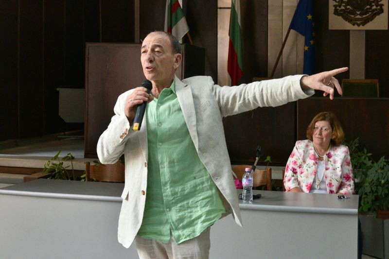 От своя страна Димитър Митев сподели, че е съвпадение пристигането на актьора в Сливен именно днес, когато се открива VIII Национален детско-юношески театрален фестивал „Сцена под сините камъни“.