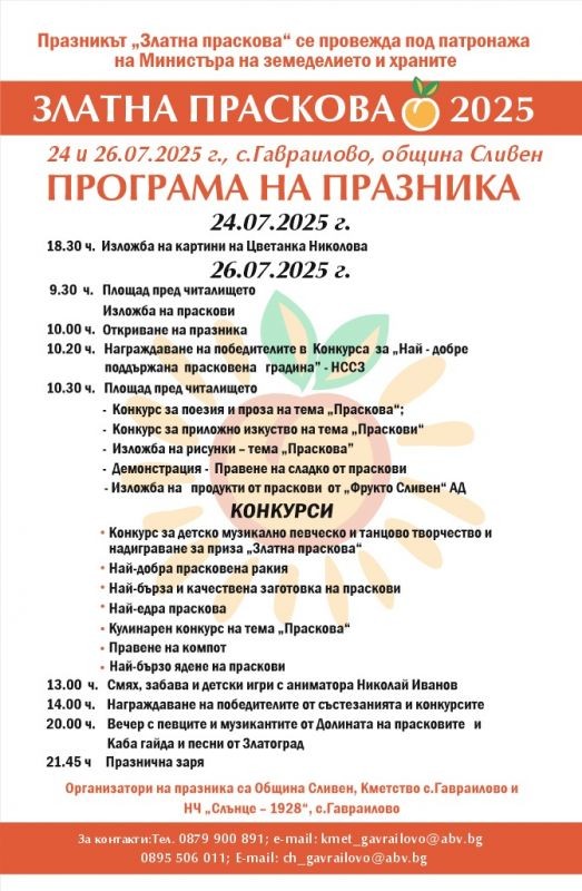 "ЗЛАТНА ПРАСКОВА" В ГАВРАИЛОВО ЗАПОЧВА НА 26 ЮЛИ