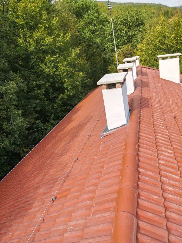 Ремонтирана е дървената покривна конструкция – ребра, столици, попове, подпори. Направена е нова дъсчена обшивка, покрита с паропропусклива мембрана. Поставена е двойна летвена скара. Комините са ремонтирани и измазани. Поставено е покритие от керемиди и капаци. Подменени са дъсчена обшивка стрехи, ламаринени обшивки, олуци и водосточни тръби. Почистено е подпокривното пространство и строителните отпадъци са изхвърлени. Монтирана е заземителна и мълниезащитна инсталация с активна глава.